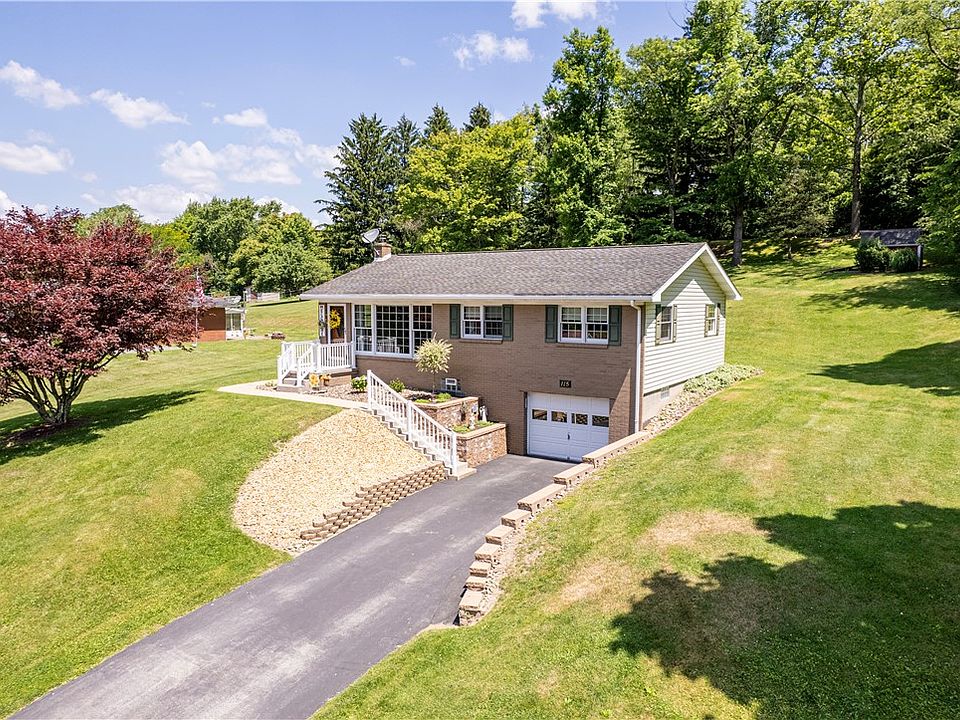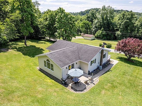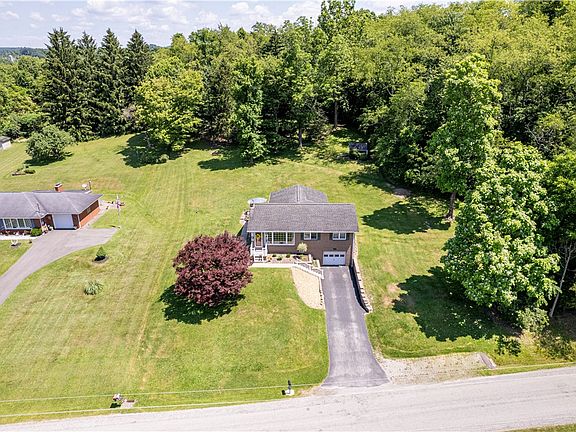 WELCOME HOME! Beautiful Brick Ranch offering spacious rooms ideal for gatherings or simply relaxing. Country location with gorgeous views yet convenient to shopping, restaurants, Route 22, 119, 217, the esteemed Chestnut Ridge Golf Course and 45 minutes to Pittsburgh. Meticulously maintained and many updates inside and out. A significant highlight of this home is the large family room addition, completed in 2007. Outside the family room, a cozy patio invites you to enjoy the serene surroundings. Installed in 2007, updates including modern windows, a new roof, and stylish railings, ensuring both comfort and durability. New refrigerator, lighting, fans, and landscaping as of 2024. Full bathroom on main level and 1/2 bath with stackable washer & dryer for your convenience. The basement offers a game room/workspace, plenty of storage and a laundry room. Spacious garage. Paved drive. Amazing property for outdoor fun!