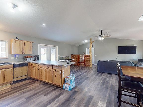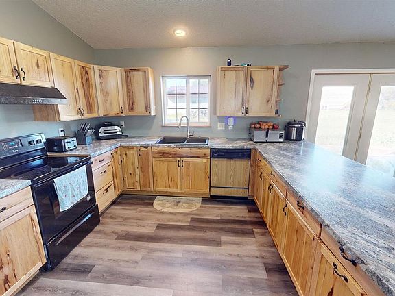 Winter's coming! Enjoy a 24x32 attached garage that is insulated, electric, floor drain, firerock and a fire rated door. Totally open living room, dining room and kitchen area for easy entertaining and quality time. There is a pellet stove for added ambiance and heat. Two bedrooms up do not have a heat source. The kitchen has beautiful wood cabinets, range, refrigerator and dishwasher. The full fenced-in back yard has a large 13x26 patio. This home has been lived in but appears in solid condition. The septic consists of a grinder in a pit on the property connected to the city sewer at the road. The home has well water.
