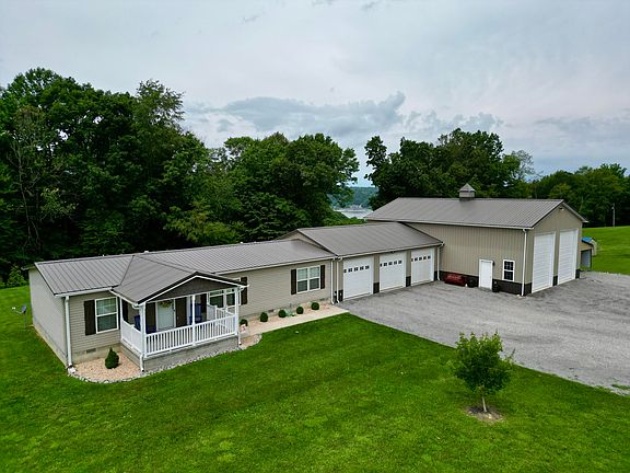 Lake View all year long on 4 acres! Less than 1 mile from a boat ramp and beach area! TONS of garage space for boats/campers/toys. Once you come see this one of a kind 3 bed 2 full bath property, you won't want to leave. Roof is less than 3 years old. The large master suite features a walk-in closet, walk-in shower, as well as a huge soaking tub. Open concept living/kitchen/dining area with a massive chef's kitchen. This transitions into the laundry room and mud/room with utility sink just off of the garage. Once you enter the 3 bay garage that is just under 1200sqft, you will find the ultimate hangout spot overlooking the lake, equipped with a mini-split HVAC unit as well as a wood burning stove! Regardless of the season, this is the place to be! On the other end of the garage, you'll enter the massive 2 bay garage that measures 1700sqft. The doors are 14' tall and the ceilings are 16' tall. It is already equipped with a 50amp plug for your RV or camper. The possibilities here are endless! Whether you're looking for a weekend getaway at Lake Cumberland or looking to retire and enjoy the peace of this private area, this place is it! Don't let this one slip by... It's too good!