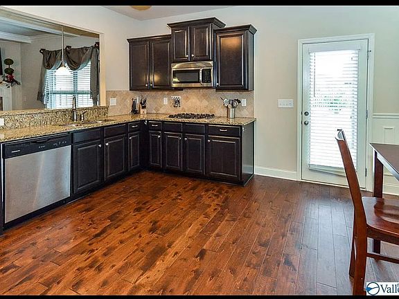 Great three-bedroom, three-bath FULL BRICK home in a convenient location near shopping, Bridge Street, and Redstone Arsenal. Open floor plan featuring Great Room, Family Room with Coffered Ceiling and Fireplace, Granite counters, double ovens, and GAS stovetop in Kitchen, Dining, and Laundry room downstairs. Beautiful wide plank hand-scraped wood floors, LOTS OF CROWN MOLDING. Perfect with Loft and Bedrooms up. Spacious Master Suite, Spa Bath, and Huge Walk-in closet. LARGE Covered Patio for grilling off the kitchen. Large rear yard , fenced in Covered front porch. Two car garage.