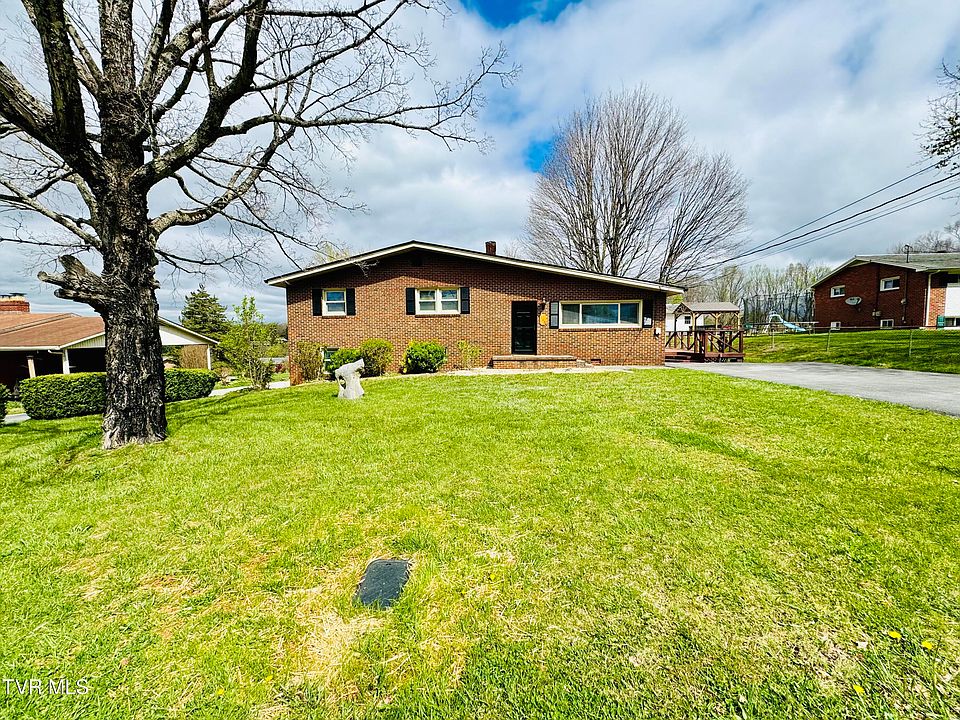 Introducing this captivating remodel mid-century modern home, featuring a fully bricked exterior and inviting vaulted ceilings upon entry. Ascend four steps to discover three bedrooms, including the primary suite, and two bathrooms. The eat-in kitchen area boasts a spacious deck, perfect for hosting gatherings. Retreat downstairs to the finished basement, offering a generous den with a wood-burning stove nestled in the fireplace, along with a convenient full bathroom for guests. Complete with a garage and laundry room, this property provides easy access to Highway 26, conveniently situated between Johnson City and Erwin, Tennessee, and just a short distance from Asheville, North Carolina. Enjoy the perks of No State or No City Tax. In addition New: roof, water heater, refinished floors, paint through out, and garage door (pending installation).