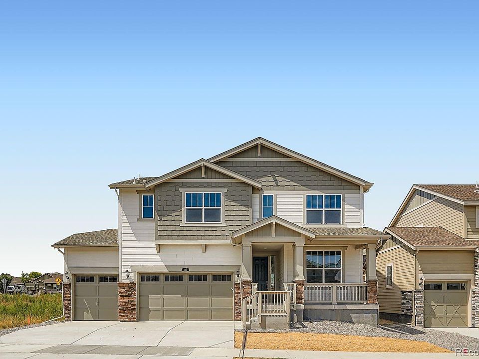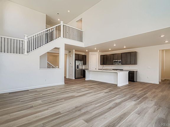 Move In Ready NOW!! This gorgeous Stonehaven is located on a corner site and features 4 beds, 4 baths, great room, spacious kitchen, tech space, loft, 4 car garage and unfinished basement. Beautiful upgrades and finishes throughout including vinyl plank floors, stainless steel appliances, slab quartz counters & island and more. Lennar provides the latest in energy efficiency and state of the art technology with several fabulous floorplans to choose from. Energy efficiency & technology/connectivity seamlessly blended with luxury to make your new house a home. What some builders consider high-end upgrades, Lennar makes a standard inclusion. amenities. This community features extensive trails, wide open spaces, and twin sapphire lakes all set against backgrounds of deep blue skies and Colorado's breathtaking sunsets! Photos and tour are model only and subject to change.