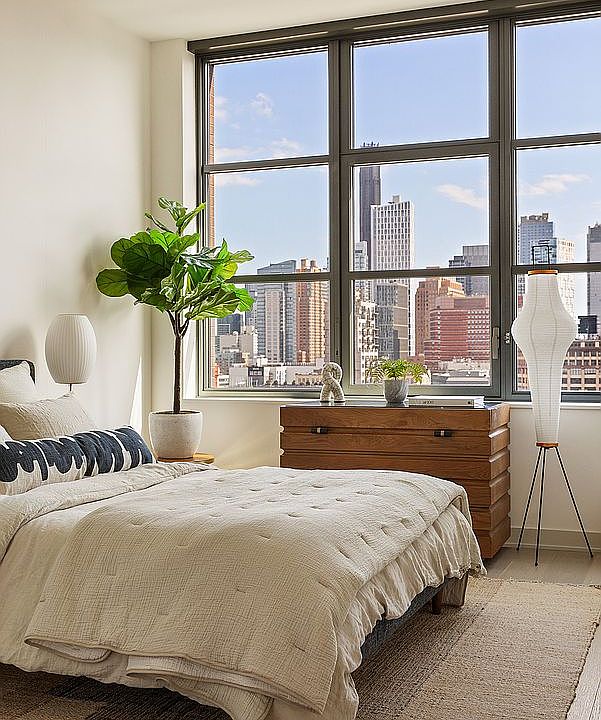 Residence 5L-York is a 1,638sf sun-filled corner three bedroom, three bathroom home with southern and western exposure, offering a gracious layout and immense divided light windows that frame treetop and park views with Downtown Brooklyn's skyline on the horizon.