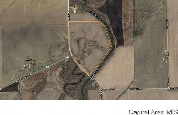 60 +/- acres of farm ground located approx. 45 miles from Springfield. 27.7 acres tillable(leased)with 15 acres of CRP ground, creek and bordered timber. There is a 70x60 graded home site with services of electrical, water and natural gas. Extensive septic for a 3 bedroom home. Land has a 2 BR, 1BA mobile home and single car shed/garage-both can stay or seller will remove.