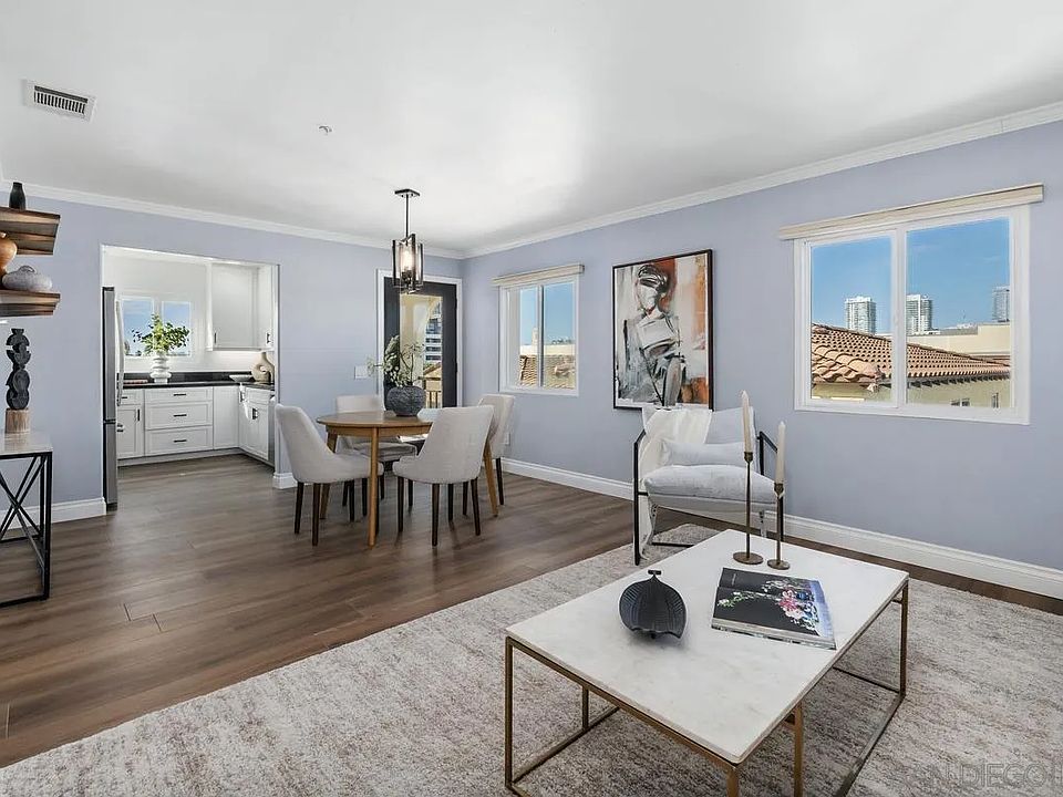 Experience stylish urban living in this completely remodeled 2 bed, 2 bath ground-floor corner condo in the heart of Golden Hill, showcasing downtown views and a peek-a-boo glimpse of the Coronado Bridge. No detail was overlooked, enjoy new vinyl flooring throughout, custom-fitted and freshly painted interior doors, and modern bathrooms, including a spa-inspired primary ensuite with a custom tile walk-in shower and sleek fixtures. This move-in-ready home also features two side-by-side parking spaces as well as a private storage unit on property for added convenience. Perfectly positioned near the 5, 94, and 163 freeways, and just a 15-minute walk to Petco Park, this location offers unbeatable access to Downtown, South Park, and Balboa Park. The community has recently undergone a major renovation, including new exterior stucco, roof, updated stairways, balconies, and walkways, providing both style and peace of mind. A turnkey gem with every upgrade and amenity, this is San Diego living at its finest.