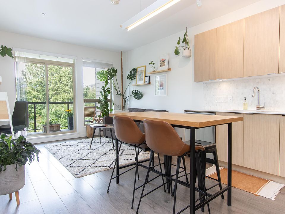 Tucked beside the tranquil Squamish estuary, this beautifully decorated 2-bedroom + den condo offers a rare blend of nature and downtown living. Surrounded by forest views yet steps from shops, cafés, and restaurants, it captures the essence of the Squamish lifestyle. High ceilings and large windows flood the space with natural light and frame stunning views of Mount Garibaldi. Designed for comfort and functionality, offering two parking stalls, and a storage locker. The building amenities include a common room, rooftop deck, and garden boxes. Step outside to the estuary trails that lead to the river and ocean, or enjoy tennis courts and a dog park just behind the building. A perfect mix of serenity, style, and walkable convenience—this is downtown Squamish living at its best.