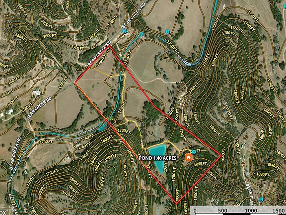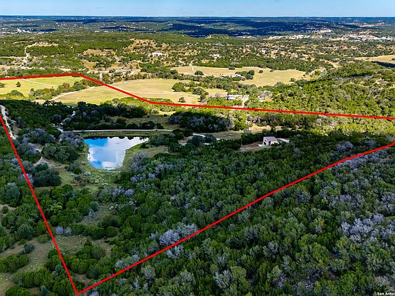 Bear Creek Ag-Exempt Hill Country Retreat | Hunting Permitted | Creek Frontage | Improved Pastures | Custom Home Plans! This extraordinary 59-acre ag-exempt estate offers over 1,000 feet of Bear Creek frontage on both sides located just minutes from Kerrville. Improved pastures produce up to 90 round bales of hay annually, blending productivity w/natural beauty. The existing 1,230 sq ft ICF (Insulated Concrete Forms) residence offers superior energy efficiency & strength, featuring 2 bd, 2 ba & expansive deck w/panoramic views. The insulated three-bay garage, w/dual pass-through bays, includes a full bath, laundry, & storage. This Turnkey infrastructure includes a private well, pump house, 5,500-gal storage tank, aerobic septic, propane, & gravel roads. In addition, A prime hilltop homesite adjacent to the current residence is cleared & ready w/architectural plans for a 4,261 sq ft ranch home w/585 sq ft covered decking. Abundant wildlife includes Axis, Whitetail, & Turkey. Graced by Live Oak, Red Oak, Sycamore, Cypress, & Cedar, creates a truly scenic & serene setting. Perfectly positioned for comfort & convenience, close to medical facilities, fine dining & all amenities.