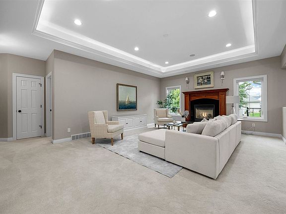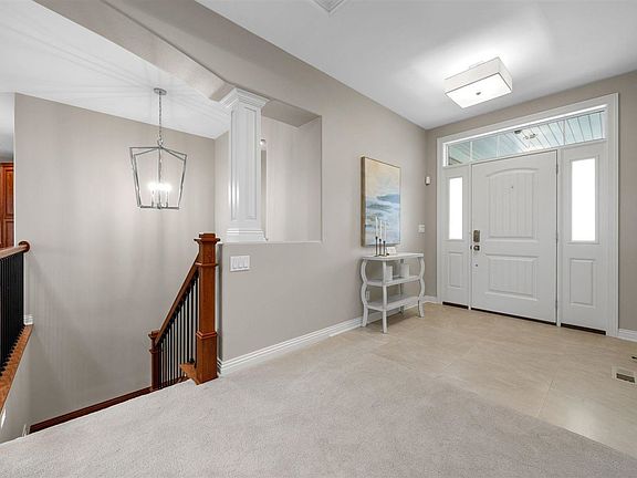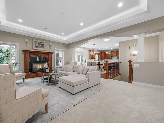 With countless upgrades & custom touches throughout, literally NO expense was spared in the recent reboot of this show-stopping home! From the incredible curb appeal to the interior arches, columns, tray ceilings & more, this 6-bedroom home delights at every turn. Step inside to a tile foyer, pristine living room with gas fireplace, open dining area & custom chef’s kitchen with quartz countertops, Brazilian cherry floors, stainless steel appliances & large island/breakfast bar. Ample natural light streams from the sunroom’s gable window wall & the 7 sun tunnels added throughout the home. Convenient family drop zone with lockers & cubbies, plus a spacious laundry room with quartz folding station, utility sink & additional storage. Three generous bedrooms on main level, including the Primary Suite with walk-in closet, spa-like ensuite bath with tile shower, freestanding soaker tub & heated floors. Downstairs, enjoy a 2nd kitchen/wet bar, granite countertops, 3 more bedrooms, including one with an ensuite bath, a 4th bath, and a huge rec room area with another gas fireplace & a wall of built-in cabinets. Maintenance-free deck overlooking the lower patio & landscaped yard. Heated 3-car garage, irrigation, RO, tankless water heater, closet systems, security system, smart thermostats, & so much more! Truly a must-see home!