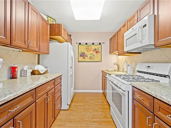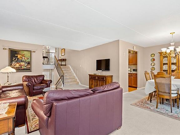 Move right in and enjoy life! Spacious tri-level with balcony overlooking pool area. Open and airy- light and bright! Neutral decor throughout. Kitchen has been updated with cherry wood cabinets and hardwood floors. Both bath and powder room have been updated. Large bedrooms with excellent closet space. One car garage space #7 on G-1. Great storage space plus powder room on entry space. Maintenance fee includes taxes, gas, electric, water and sewage. Outdoor pool, walking trails and picnic areas.