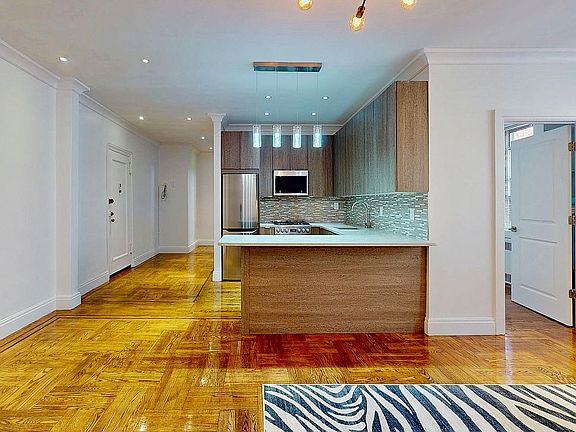 Custom blackout shadesHardwood parquet flooringVideo intercom systemStainless steel appliancesLarge separate roomsNew baseboard moldingsModern kitchen