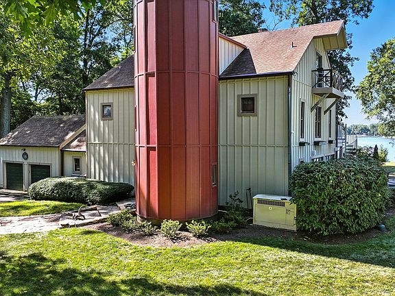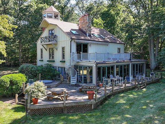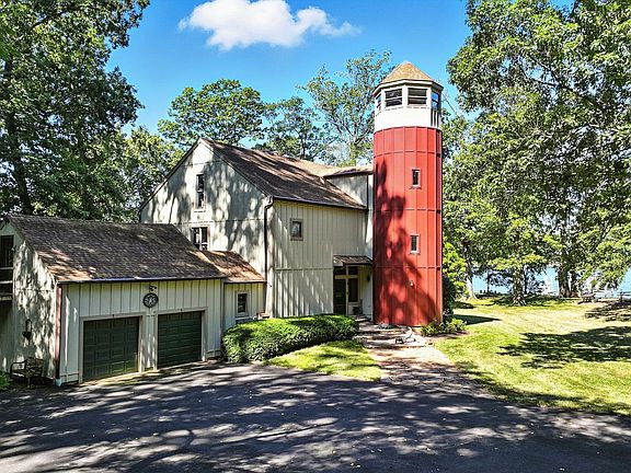 This amazing property is like no other. Private w/ deep water. The winding private driveway leads to tennis court & tennis house w/ it's own driveway or stay on the main driveway to the main house. The main part of the main house was built w/ materials from a 1700s barn. Incredible beams, floor, doorways & more! 3 story great room w/ full stone fireplace & chimney. This dwelling provides 4 bedrooms & 2.5 baths spanning 3 stories, plus a lookout tower. There is also an efficiency apt. over the garage w/ its own water views. Roof & HardiPlank siding are reasonably new. There is an accessible crawl space & house generator. Interior is ready for your upgrades. The tennis house has 4 rooms, a kitchenette, full bath & sauna. It is far enough away from the main house to provide its own sandy beach front, great views & privacy. DO NOT ENTER PROPERTY W/O APPOINTMENT!