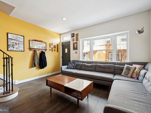 A to-die-for renovation with great natural light and outdoor space on an ideal East Passyunk block–what more could you ask for? Notable designer J. Thom created a perfect blend of form and function with a smart use of space, upgrades galore and handpicked finishes. You can’t miss the wallpaper (so good it was written up in the Inquirer), dreamboat of a kitchen and spa-worthy bathroom, double argon casement windows and hardwired speakers, while high-velocity AC, zoned heating with radiant floors on the main level and beefed-up insulation are felt-but-not-seen upgrades. The first floor has ceramic wood-look floors that run from the front bay window, past the built-in bookshelves and record alcove with jungle print wallpaper and vintage jade porcelain light fixture, to the kitchen with sliders to the back deck. The expanded galley kitchen is its own study in good design. A Liebherr fridge, Miele dishwasher, Capital professional-grade range with oversize center wok burner, and quartz countertops with 33-inch Kohler Workstation sink are set in ample midnight blue custom cabinetry handmade in PA. One wall has a custom walnut dining butcher block peninsula set against a white field tile backsplash, textured floral wallpaper and wide window above a wax-sealed reclaimed barnwood shelf. The opposite side gets down to business with a full-wall stainless steel backsplash that runs behind the range, hood and open shelving. The super spacious rear deck is a natural extension of the living space, with hardwired sound and more than enough room for a full lounge set, grill and greenery. Upstairs there are two sunny bedrooms with crown molding, French oak floors, marble window sills and custom oak radiator covers. Behind a salvage church barn door is the full bath, which features two exposures, oversize ceramic tiles, a floating double vanity, built-in storage and a downright enormous walk-in shower with dual showerheads, pebble tile floor and room for a bench behind frameless glass. Immediately adjacent is the world’s sweetest combo half bath/laundry room with a white and yellow Randolph Morris cast iron wall-mount utility sink, crisp white beadboard with silver koi wallpaper above, and white penny tile floor–with Bosch frontloaders to boot. There’s additional living space for a guest room, media room or home office in the basement, where the front section has been stylishly finished with exposed beams, luxury vinyl flooring, and tons of built-in shelving; there’s plenty of room left for storage in the separate unfinished utility room. With Passyunk Ave at the foot of the block, you’re one minute away from the Singing Fountain, shopping and world-class dining, and since the house is situated on the opposite end, you retain the quiet residential street vibe. The L-shaped front steps, custom tree bench and room for a bistro set or glider out front set the stage for ultimate stoop hangs.