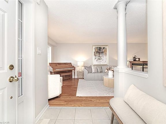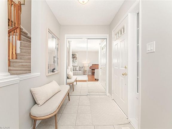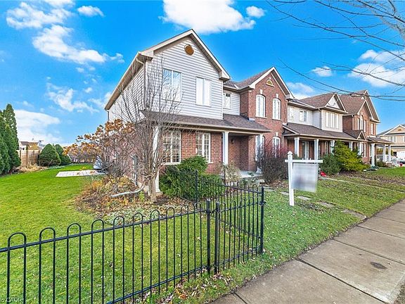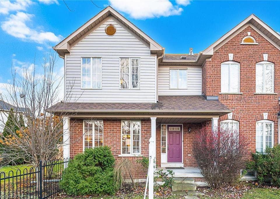 Welcome to this very spacious end-unit townhouse offering a very rare, ultra-premium lot with large back & side yard. The interior space feels like a semi-detached and the yard makes it the envy of even most detached homes in the area. This home has been pampered and loved by the original owner. The main floor provides a large eat-in kitchen and a living room dining room separated by a 3-sided gas fireplace. Upstairs you will find 3 very spacious bedrooms and 2 bathrooms, including the very large primary which has a 4 piece ensuite bath and a walk-in closet. The basement is finished and has a bathroom rough-in for future use. Outside you will find a large deck and beautifully landscaped gardens. This home offers 1-car garage plus a driveway large enough for 3 cars. The area cant get any better. In fact, this home is within walking distance to GO Station, Elementary & High Schools, Public Library, Arts Centre, Coffee shops, Cineplex Theatre, Restaurants and more...