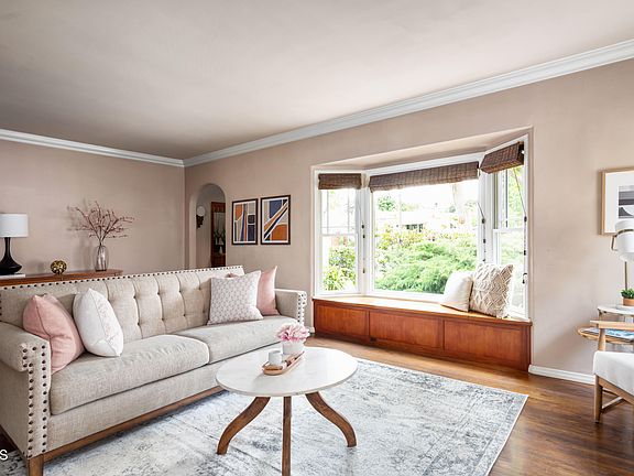 Settled nicely in between the highly desirable East Pasadena communities of Brigden Ranch and Kinneloa Mesa, this 1938 Traditional home is hitting the market for the first time in 24 years. Cared for and continuously updated by the owners throughout the years, it has all the attractive amenities of modern living with its architectural details intact. A large bay window with seating alcove looks out to the tree-lined quiet street, while additional newer Pella windows allow light to spill in. The welcoming living room also has an original fireplace, hardwood floors, and curved entrances flowing seamlessly into the dining room with French doors to the den space and outdoor patio area. The updated kitchen features custom cabinetry, saltillo tile, granite countertops, and newer appliances. A sweet eat-in area for breakfast on the go completes the public wing of the home. Two bedrooms share the updated bath, both with plenty of closet space and room to grow. Details throughout the home include built-in alcoves, crown and base molding, newer HVAC system with NEST thermostat, energy efficient roofing, and new insulation. The backyard is flat and grassy with a paved patio space awaiting your own special vision. Carport, garage, and driveway offer plenty of parking space.