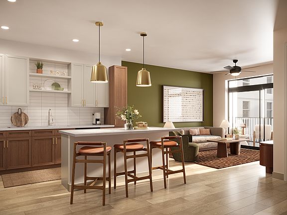 - Exterior features: BILT Rewards, Bike rack room with fix-it station, Brand-new interiors with modern finishes, Clubroom with full chef's kitchen, Coffee bar, EV charging stations, Mudrooms in select floor plans, Package Receiving, Pet Park, Pet Washing Station, Quartz islands with accent pendant lighting, Shaker-style two-toned cabinets in kitchens, Smart locks and pre-installed smart tech packages, Storage rooms available for rent, TV Lounge, WiFi throughout all common areas, Wood-vinyl plank flooring throughout