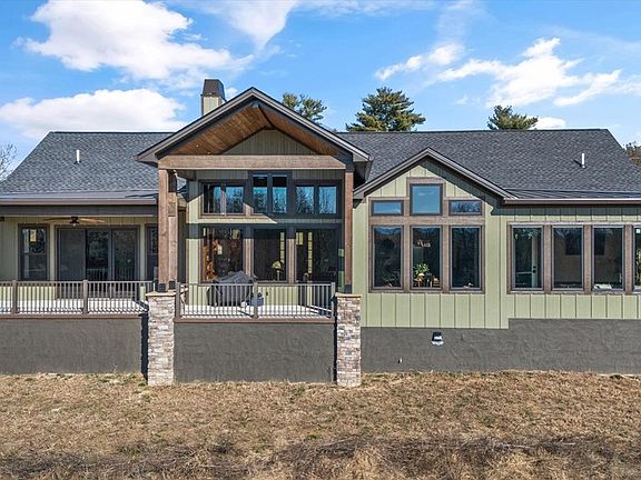 Thoughtful architectural rooflineFloor-to-ceiling stone fireplaceOpen-concept layoutExpansive windowsCovered entries