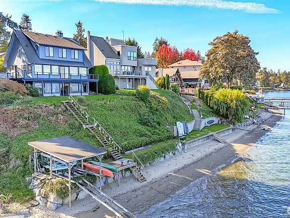 Welcome to your oasis where the beauty of nature meets waterfront living ~ Panoramic views of the sound and Mt Rainier with a great sandy beach ~ Wake to the soothing sounds of waves and symphony of wildlife that call this home~ Ample living space with large windows to maximize the views ~ Main level is the kitchen, living room and full bath ~ Downstairs is fully finished with many possibilities ~ Upstairs is a large Master with bath, office space and walk in closets ~ Tons of storage ~ Outside you will find a detached 3 car garage with work bench and shelving ~ Potting shed ~ Garden space~ Boat house w/deck~ Float w/piling ~Tideland Rights~ New Heat pump~ Ready for you to put your own touch and start making memories at the beach!