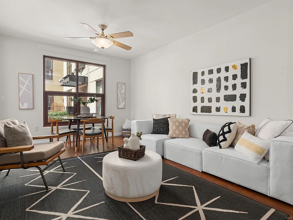 Charming Metrome Residence with Zen Courtyard Views! This beautifully maintained one-bedroom home features engineered hardwood floors, fresh paint, and ceiling fans in both the living area and bedroom. The kitchen offers granite countertops, stainless steel appliances, and easy-care stone flooring. Enjoy a spacious private patio overlooking the tranquil courtyard. Ideally located in the Ballpark District—just steps from Petco Park, the Central Library, San Diego Bay, and the Gaslamp Quarter. Metrome amenities include a fitness center, resident lounge, onsite security, and a peaceful courtyard with seating. Metrome in Ballpark District offers a prime Downtown San Diego location—steps from Petco Park, San Diego Bay, Gaslamp District, the Central Library, shops, and restaurants. Residents enjoy a Zen courtyard, fitness center, landscaped outdoor area with water feature, bike storage, secure entry, and a common lounge with kitchen. Experience the perfect blend of style, convenience, and community at Metrome!