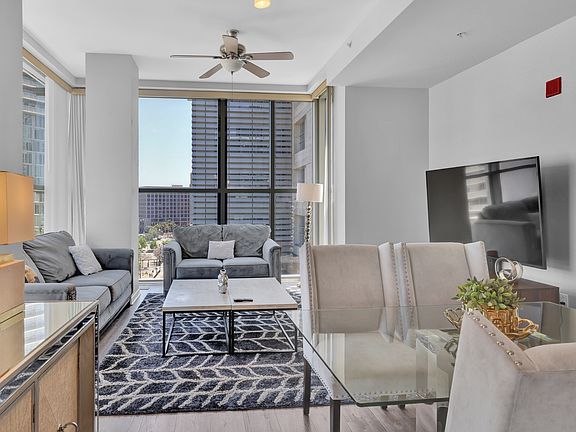 This is the ideal space to call home. Very spacious at 1300SF and well appointed with a modern chic, yet relaxed feel. Bright and open living spaces with floor-to-ceiling windows in the living area to take in the stupendous view of downtown.