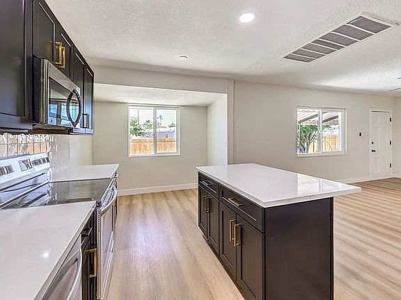 Discover the perfect blend of style, functionality, and unbeatable value in this fully upgraded property. The main home offers 3 spacious bedrooms and 2 beautifully remodeled baths with custom tile showers. A separate 1-bedroom casita adds flexibility for guests, storage, or a private office. Enjoy a sleek kitchen with quartz countertops, stainless steel appliances, and elegant black shaker cabinets with soft-closing features. Fresh paint, 5-inch baseboards, and durable luxury vinyl plank flooring elevate every room. The huge 8,000 sq ft lot provides gated RV access, secure parking for multiple vehicles, and ample space for recreational toys or business storage needs. Two covered patios and low-maintenance artificial grass create an inviting outdoor retreat. New windows and thoughtful upgrades ensure modern comfort and peace of mind. This move-in ready home is a rare opportunity to own a versatile property with exceptional space and unlimited potentialdon't miss this great deal!