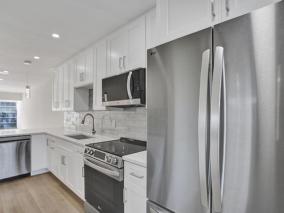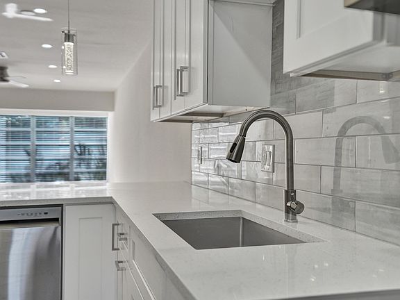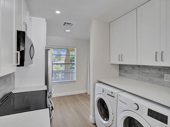 Completely renovated 2bed, 2bath corner unit condo offers modern luxury and comfort. The open-concept living area boasts brand-new flooring, upgraded electrical, recessed lighting, and large windows that flood the space with natural light. Fully equipped gourmet kitchen featuring quartz countertops, custom cabinets, stainless steel appliances, and a stylish tile backsplash. Built in laundry center with full size washer and dryer. Luxury (cork backed) vinyl flooring, Craftsman doors, baseboard and trim. Remote controlled ceiling fans in every room. Well-maintained community with amenities such as a pool, fitness center. Close to shopping, dining, and public transportation, enjoy the best of modern living only minutes from the beach. NEW ROOF 12/24