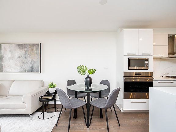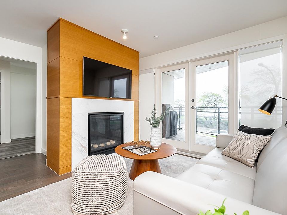 Modern kitchenWaterfall quartz countersWolf gas range topKitchenaid wine fridgePrivate balconyOverlooking white rock beachWalk-thru closet