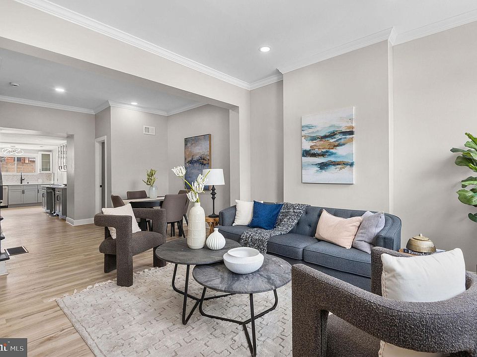 Back on the market ! Welcome to 1150 S 6th St –This beautifully renovated three-story home offers over 1,800 square feet of stylish and comfortable living space, featuring 4 bedrooms and 2.5 bathrooms. As you step inside, you're welcomed by a bright and open concept layout, seamlessly connecting the cozy living and dining areas—perfect for relaxing or entertaining. The fully upgraded kitchen is a standout, showcasing white shaker cabinets, quartz countertops, a stunning backsplash, and matching stainless steel appliances. An elegant light fixture adds a sophisticated touch, while the window above the sink provides a lovely view of the backyard. Step outside from the kitchen to a generously sized backyard, ideal for entertaining, grilling, or simply unwinding. There’s plenty of space to set up patio furniture and enjoy the outdoors. A convenient half bath completes the first floor. Upstairs on the second floor, you'll find three spacious bedrooms with ample closet space and a beautifully updated full bathroom. The third floor is dedicated to the luxurious primary suite, featuring an accent wall, a private en-suite bathroom, and plenty of space to unwind. The master bathroom includes a double vanity with LED mirror, a bathtub, and a stand-up shower, offering a spa-like experience at home. Located just a short distance from the vibrant Italian Market, local markets, coffee shops, restaurants, small businesses, playgrounds, and schools, this home offers the perfect blend of neighborhood charm and city convenience. This thoughtfully renovated home combines modern upgrades with functional design—ready for you to move in and make it your own. Home Warranty included for peace of mind.