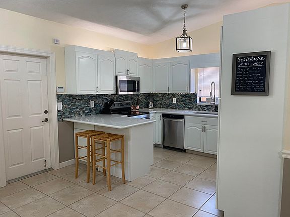 This is a must see home with a newly remodeled kitchen -white cabinets, quartz, mosaic backsplash, stainless steel appliances, new sink and modern faucet! This home has character-surrounded by beautiful oak trees throughout the entire property. The backyard is paved which is ideal for outdoor entertaining. This home also features a built out man-cave that can also be easily converted back into a traditional 2 car garage. The home also features a Vivint smart home security ecosystem with 3 cameras that can be easily accessed with your mobile device-receive notifications and control your smart home system from anywhere!