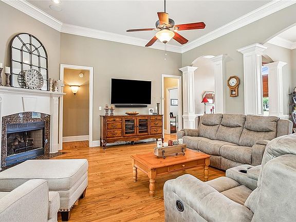 This Stunning home features an exceptional floor plan with 4 Bedrooms, 3 Full baths downstairs and a Bonus / Playroom above the garage with meticulous details and In-Ground Heated Pool! The foyer, den, dining room, and master bedroom has beautiful hardwood flooring. Elegant millwork columns and crown molding add a touch of sophistication throughout the home. The open floor plan is enhanced by numerous windows adorned with plantation shutters and custom draperies overlooking the In-Ground Pool. The entertainer's kitchen, complete with slab granite countertops, cypress cabinets, stainless steel appliances, refrigerator, and wine cooler, opens to a cozy breakfast/keeping area. The primary suite is simply magnificent with a large closet, his and her vanities and renovated shower. New Roof in 2021. Relax in the Heated Pool with a Spa surrounded by "sun decking." Approximately 30 feet of green buffer zone behind the home for privacy. Come see today!