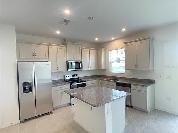 Discover this beautifully designed 2023 townhome offering three bedrooms and two and a half bathrooms in a highly convenient Kissimmee location. This corner unit features a two car garage and a bright open concept layout with high ceilings that create an airy and spacious feel throughout. The modern kitchen flows seamlessly into the living and dining areas, making daily living comfortable and inviting. Upstairs, the bedrooms are well appointed, including a spacious primary suite with ample closet space. Located in Soleil at Westside, a newer community with a relaxed atmosphere and excellent amenities including a pool and playground. Enjoy close proximity to shopping, dining, and major attractions. Just minutes from the Disney World complex, Margaritaville and Winter Garden. The area also provides access to well regarded schools. Available for immediate move in. Schedule your showing today.