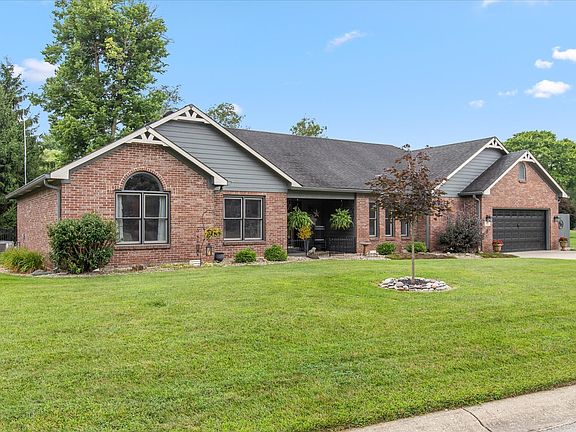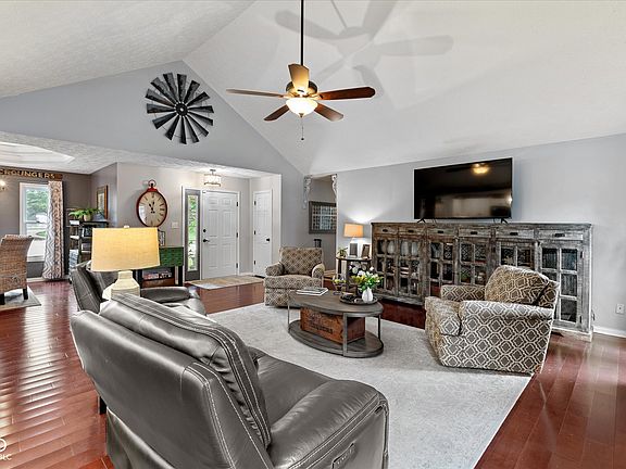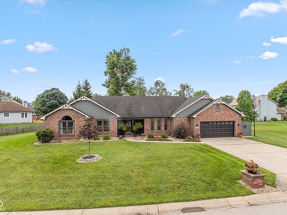 Welcome home to this custom -built ranch. Attached 2 car, extended length garage has a new insulated overhead door, brand-new pull-down attic stairs that take you to a large storage space. No need to keep trash cans in the garage as you will find custom fencing to hide those bins on the side of the garage. Step up to the covered porch which enters into the open concept floor plan. You will find a large Great Room with 14' cathedral ceilings, renovated gas fireplace including new Hearth and brick surround. Adjoining the room is an updated kitchen, showcasing a 9x5 Quartz top island that has ample pull out storage for all your baking and cooking needs and can seat up to eight. The white subway tile accents the black stainless appliances. Walk into the newly updated Laundry Room with custom walk-in pantry as well as decorative table and shelving. Washer and dryer come with pedestals and overflow refrigerator stays with the room. You will enjoy a large four season room, banked in windows. This addition can be used as a playroom, office or additional family room. Walking through the sliders you will find a beautifully landscaped, fully fenced, backyard which includes firepit, Adirondack chairs and 2 storage buildings. The custom built 12x24 storage shed/work shop is nestled next to a smaller storage shed for overflow usage. Enjoy the shade under the 10x20 louvered pergola on the oversized stamped patio. The pergola comes with tie back sun shade drapes. When you are ready to retire you will find three carpeted bedrooms. Primary has a massive walk-in closet for all your personal storage. Children will attend Avon Community Schools, which are rated and known for academic excellence. NO HOA! Epoxy Floor in garage. Garage also has a utility sink.