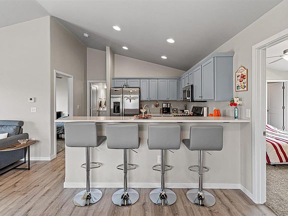 Come for the location - stay for the home. This split-foyer is in Dahnovan Estates right next to Liberty High School with easy access regardless of the commute. An extended side yard means that this zero-lot has the outdoor space of a single family home without the added cost. Upstairs, or the main level, is the spacious great room - with access to the deck - the kitchen, 2 bedrooms with the primary having a private bath and walk-in closet, and 1 additional bathroom. Lower level has a good sized rec room, 1 more bedroom, 1 more bathroom, and it's a walkout! Upgrades to the original build include window treatments and glass shower doors in each bathroom. This home is ready for you!