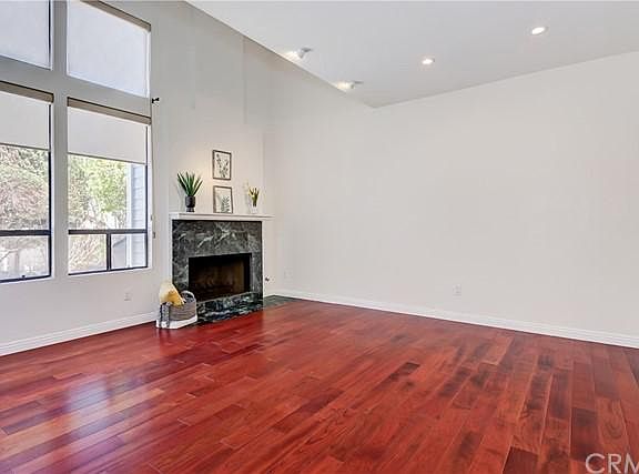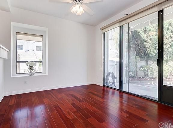 Come Take A Look... At this special upgraded end unit townhome at Baywatch. This wonderful open floor plan is filled with light from the numerous windows and sliding glass doors. The floor plan features an entry which opens to the living/dining area with fireplace and new wood flooring. The windows look out to the mature landscaped patio with trees and succulents. The updated kitchen with granite counters opens to the living and dining areas for maximum access for family gatherings and entertainng. There is a wet bar and wine storage closet near the kitchen. There are two spacious bedrooms with custom closets and ensuite baths. Both have sliding glass doors which open onto neighborhood view decks. There is an HOA Pool/Spa surrounded by the community's lush landcape. The in-unit washer/dryer closet is located on the main level. The two car garage has built in cabinets for additional storage and has front street entry. The Baywatch gated community is located near shops, restaurants, parks and in close proximity to freeway access.
