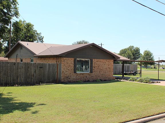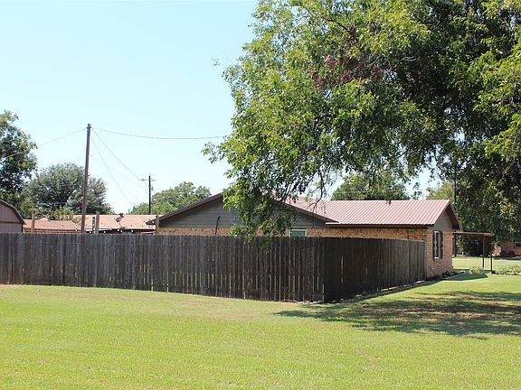 Move-in ready 2 bed, 2 bath brick home with thoughtful updates inside and out! Spacious and inviting living area with recessed lighting, waterproof laminate flooring, and electric fireplaces. Primary suite features a tray ceiling, walk-in closet, flex space that could be used as a study, exercise room, or converted into another large closet. Guest bath boasts a relaxing whirlpool tub. The kitchen comes fully equipped, with a built-in refrigerator, washer, and dryer - all staying. A full-sized laundry room and plentiful storage throughout make daily living a breeze. Outside, you’ll love entertaining with a covered back patio, fire pit with lighting, and outdoor shower. The fenced backyard also has space perfect for gardening, plus two storage buildings and RV hookup. The manicured lawn and landscaped flowerbeds add to the curb appeal, while new energy-efficient windows ensure comfort inside.