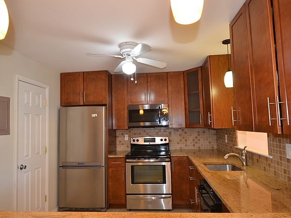 The primary bedroom has its own full bath, and the kitchen features stainless-steel appliances with plenty of storage. Washer and dryer are in the unit, and water is included in the rent.