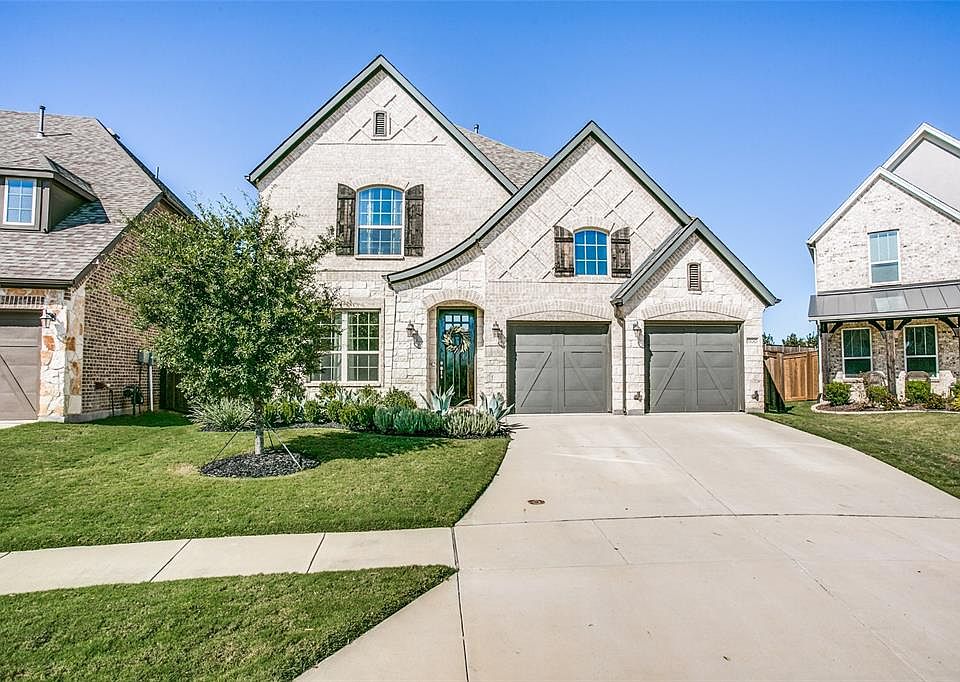 Impeccably maintained 4 bedroom home in the master planned community of Canyon Falls. Modern neutral color palette, stylish light fixtures, and linear stone fireplace give this home a modern yet transitional vibe. The kitchen features beautiful white shaker style cabinetry, granite island, quartz counters, kitchenaid appliances, walk in pantry. Master bed located on first floor. Upstairs you will find a spacious loft. 3 additional bedrooms and a media room. This smart home allows you to control your lights and thermostat directly from phone. Custom exterior Inception lighting system will have this home ready for the holidays with a flip of a switch. Large backyard with patio perfect for entertaining. Argyle ISD