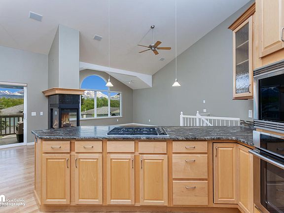 Just steps to the golf course and unobstructed views of the Chugach Mt.'s, this place is ready for you! Open concept living with soaring ceilings, OVERSIZED kitchen with granite counters and high end appliances (wolf/electrolux). Master Suite has large private bath with infloor heat and massive walk in closet!! Downstairs has large entryway two additional bedrooms, laundry and bathroom. Must see!!