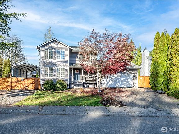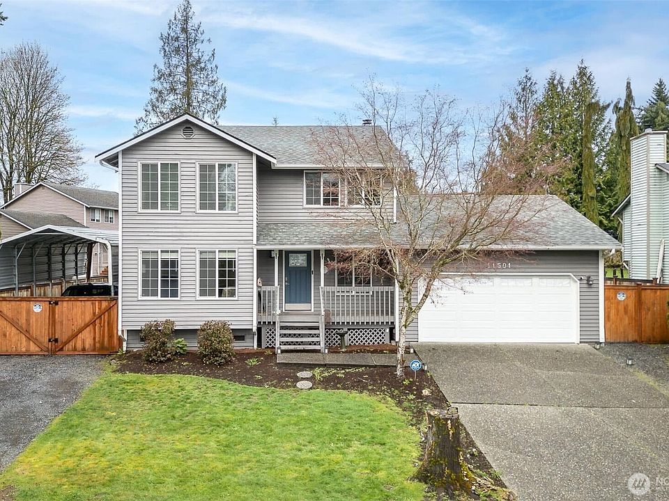 Beautiful 5 Bedroom, 2.5 bathroom Lake Stevens home with tons of natural light from every room! Downstairs features a formal living & dining room that flow right into the gorgeous Chef's kitchen with large island, Quarts Countertops & Stainless Steel appliances - opens to your family room with a fireplace & Office/Bedroom on the main! Upstairs features 3 large secondary bedrooms, and a very spacious primary suite with primary bathroom attached & mountain views on a clear day. Step outside on your new deck (half covered for those rainy days-perfect to BBQ year round, 2-3 Car carport, RV parking, large 1/4 acre lot, fully fenced backyard, patio & A/C! Gate installed on back fence line to enjoy the walking trails! WOW!