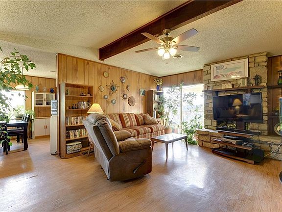 Enjoy privacy and comfort in this cozy country getaway on almost 5 acres. The yard includes flowering trees and fruit trees, with birds and wildlife at home. This charming three bedroom home has a natural limestone exterior, with a limestone wall in the living room to continue the theme. The bonus space can be used as a playroom or office. Prime location in an up-and-coming area with acreage to spread out. RV barn/storage at the rear of the lot.