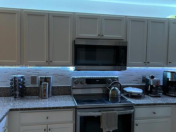 Spectacular and comfortable no stairs, no carpeted floors, and located near Doral's top schools. This modern and beautifully remodeled apartment features 3 spacious bedrooms, 2 full luxury bathrooms with walk-in showers and glass doors, a stylish kitchen with high-end appliances, and energy-efficient washer and dryer with drawer pedestals. Bright open living and dining areas with LED lighting throughout and a lovely balcony overlooking lush trees. White porcelain floors, two parking spaces (one assigned), ample guest parking, and condo fee included. Steps from the pool and school.