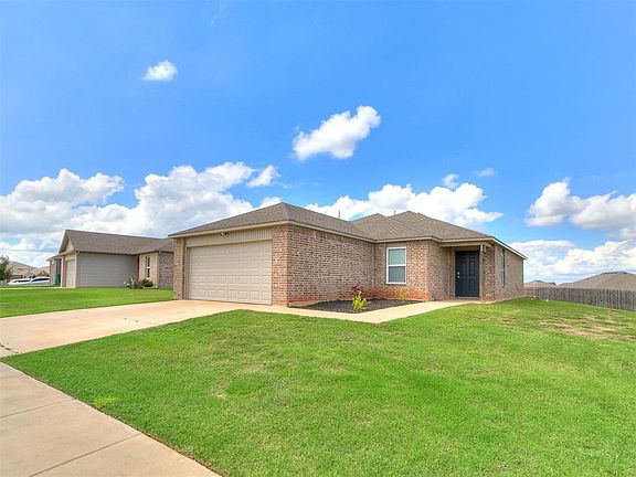 Welcome to your 3 bed, 2 bath home with incredible views from the expansive .26 acre +/- hilltop lot. Located in the highly desirable Redstone Ranch addition, with neighborhood playground, the home is within walking distance to Redstone Intermediary. Built in 2020, this home offers a smart, open-concept layout that maximizes both comfort and functionality. You will enjoy the beautiful views as you walk up to the front door. Stepping inside, you’ll discover the bright and welcoming living space that flows seamlessly into the dining area and kitchen. The kitchen features pantry, breakfast bar, modern cabinetry, and ample counter space — ideal for cooking, entertaining, or everyday life. The dining area can fit a large dining table, ideal for large celebrations or intimate gatherings. The spacious primary suite has an en-suite full bathroom with tub/shower combo, vanity/makeup area, and a generous walk-in closet. Two additional bedrooms and a second full bathroom are located on the other side of the home, offering privacy and flexibility. The two-car garage provides secure parking and extra storage, while the home’s energy-efficient construction helps keep utility costs low. This home is just the right size — easy to maintain, yet roomy enough to enjoy. The backyard is fenced on three sides, with no fencing across the front section, making it easy to customize, expand, or leave open depending on your needs. You’ll also enjoy easy access to shopping, dining, and major highways — all while living in a quiet, well-kept neighborhood. This is a fantastic opportunity for a move-in-ready property in one of Yukon’s most popular communities. So schedule your showing today!