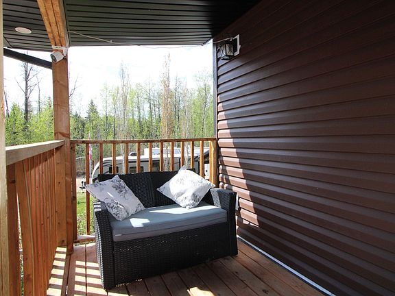 Escape to Year-Round Lake Living at Floatingstone Lake! This 2019-built gem in Smith Grove Resort offers open-concept living with vaulted ceilings, a bright kitchen with an island, dining, living area. 4 piece bath and a cozy upstairs loft with a second bedroom. Enjoy relaxing on the front porch or the covered back deck, complete with a built-in hot tub. The property also features a single attached garage, a "man cave" or guest suite perfect for watching the game. Also features a wood shed, and an outhouse for extra convenience. Water Supply is 1000 gallon Cistern and Septic holding tank is 1500 gallons. Located on a quiet no-exit road, it’s a short stroll to the public beach at Floatingstone Campground with a boat launch, playground, and waters perfect for swimming, paddleboarding, and boating. Only 25 minutes from St. Paul, 2 hours east of Edmonton, 40 minutes to Lac La Biche and 1 hour from Cold Lake. Tailored for peaceful living, perfect for couples or retirees. This is THE spot to be!