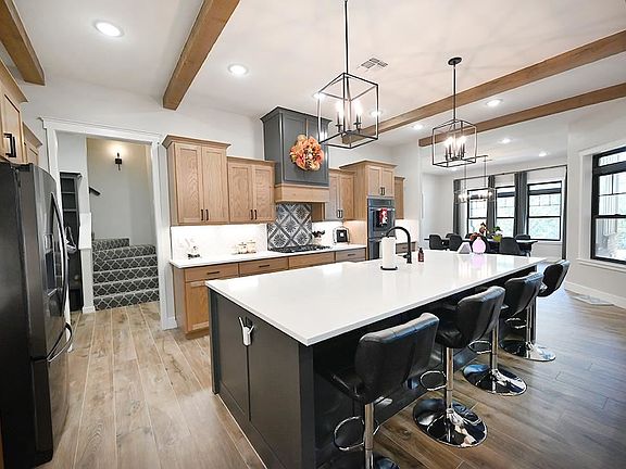 Where luxury meets country charm This masterpiece is built on one of the largest lots in the coveted Steeple Chase subdivision—1.54 acres of serene countryside just minutes from town, within the highly sought-after Perkins School District. This like-new luxury home offers space, style, and sophistication in a peaceful setting. Step through double front doors into a spacious entryway that opens to a grand living room with vaulted ceilings, rustic wood beams, and a cozy wood-burning fireplace. The open-concept design flows into a chef’s kitchen featuring white oak cabinetry, abundant counter space, a generous center island, and a walk-in pantry with prep counter. The dining room showcases a wall of windows overlooking your expansive backyard. With five bedrooms downstairs—including a luxurious master suite—and a sixth bedroom or bonus room upstairs, this home offers flexibility for families of all sizes. There are 3 full bathrooms, 2 half baths, and a dedicated office space for remote work or quiet study. The primary suite is a true retreat, with soaring ceilings and sound barriers for added tranquility. The spa-like master bath includes a walk-in shower with dual showerheads, double vanities, and a walk-through to the laundry room. All full bathrooms feature double sinks for added comfort. Storage abounds with spacious closets and built-in lockers. And when it’s time to relax or entertain, step outside to your private outdoor living area—complete with a fireplace and hookups ready for your dream outdoor kitchen. Whether hosting summer cookouts or cozy fall evenings, this space is designed for year-round enjoyment. This home is packed with additional upgrades and offers the perfect blend of luxury, functionality, and outdoor living.