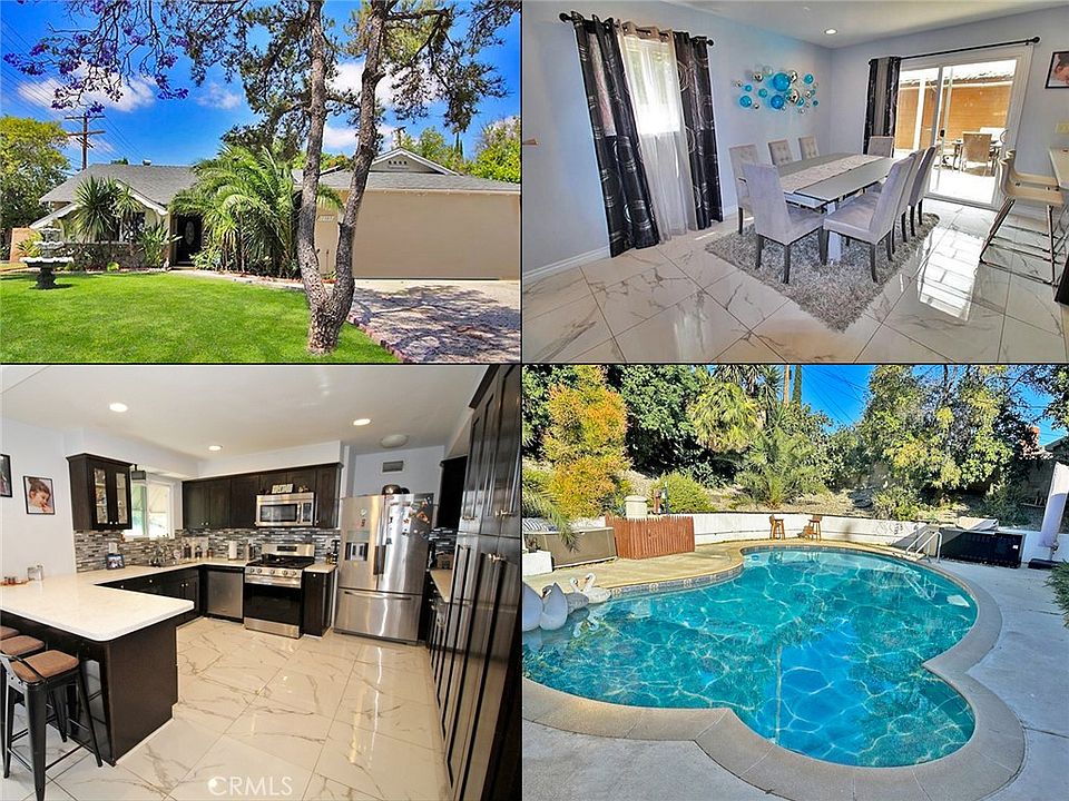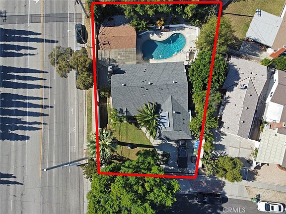 Corner lot Duplex PLUS a detached unit and a pool. Live in the main house and collect around $3,000 or more rent from other units. The vacant ADU studio is permitted and built in 2017 and has about 460 square feet with an open floor plan and 3/4 bathroom and a kitchen. Main house has about 1,570 square feet with 4 bedrooms with 2 baths, upgraded with marble tile flooring, newer kitchen cabinets, windows, copper plumbing, recessed lighting, paint, newer roof, and solar panels that are PAID OFF that come with the property. The detached studio unit is about 300 square feet, has a bathroom. Located near freeway access, schools, shopping centers, restaurants and movie theaters. Don't miss a chance to own this great income producing property.