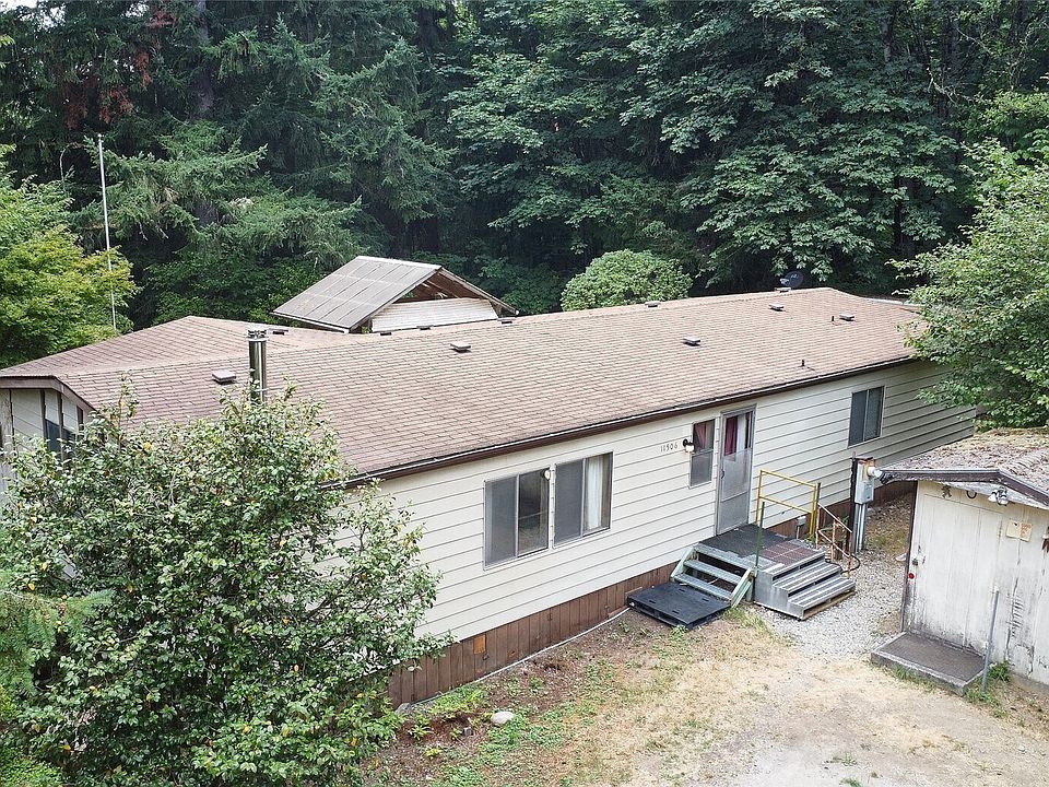 Secluded mountain living just minutes from downtown Issaquah! This 1,680 sq ft, 2-bed, 1-bath mobile home on 6 private acres offers peaceful surroundings, abundant wildlife, and room to roam. Features include spacious dining room, kitchen, living room, plus a huge 1,320 sq ft shop—ideal for hobbies or storage, 720 sq ft carport plus additional outbuildings offer flexibility for work or play. Enjoy the perfect blend of nature, privacy, and convenience on Tiger Mountain. Whether you're looking for seclusion, space to create, or the perfect blend of nature and convenience—this property delivers. Live in the home or build your dream home, septic approved for 3 bedrooms. Estate sale and home is sold as is.