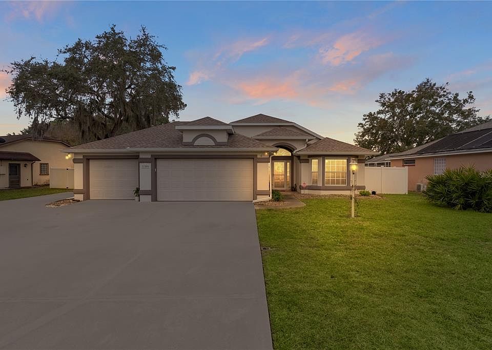 Located in a highly desirable area of Central Florida, this immaculate property is move in ready. New roof, new A/C, new appliances, new laminate and carpet, new hurricane proof privacy fence, along with new neutral paint color throughout, this home is ready and waiting for a new keeper. Well kept and super easy keeper with open floor plan, this is a great family home. There are 3 bedrooms and a generous home office, efficient laundry room and oversized garage, making use of all the under roof space. The great room has unlimited views of the pool and small lake beyond, making the space feel even larger. The master bedroom, with double walk-in closets and en suite bath, has its own glass sliding doors opening to the pool. This home is in an established, small, quiet neighborhood on an oversized lot, HOA's to protect value. The large back yard provides plenty of room for children, pets and family gatherings. Located within an easy commute to Orlando, Ocala, Mt. Dora, Tavares, Eustis, Leesburg, The Villages, Sumter County and all the resorts. Great shopping and restaurants right around the corner along with the best medical centers. In other words, just a perfect property in a perfect location. Well worth the look! BY APPOINTMENT ONLY.