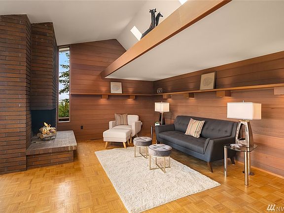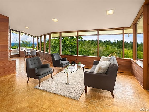 First time ever on the market! Stunning view home designed by Milton Stricker, a student of Frank Lloyd Wright. Gorgeous, uniquely Northwest panorama of Puget Sound, city and mountains is beautifully showcased from this spacious, classic contemporary home. This is an extremely rare opportunity to own a home of this calibre combining style, views, privacy, and a prized location at the north end of Vashon Island. The interior is filled with warm wood finishes, including mahogany cabinets, oak parquet floors, and cedar-clad walls. You can step out to view decks, or relax by the wood-burning fireplace in the great room and enjoy a magnificent wall of windows that frame the views. There's a bedroom and full bath on the main level; the full daylight basement also offers a wall of view windows, another bedroom, full bath, and a large versatile bonus room. The .64 acres offers an attractive blend of sunny lawns and mature plantings, with a conveniently placed carport and a garden shed. Ferries to Seattle are mere moments away, Vashon's shops and restaurants less than five minutes away. Inside and out, this home is move-in ready; but a little vision and elbow grease will reward you with a posh retreat from the city!