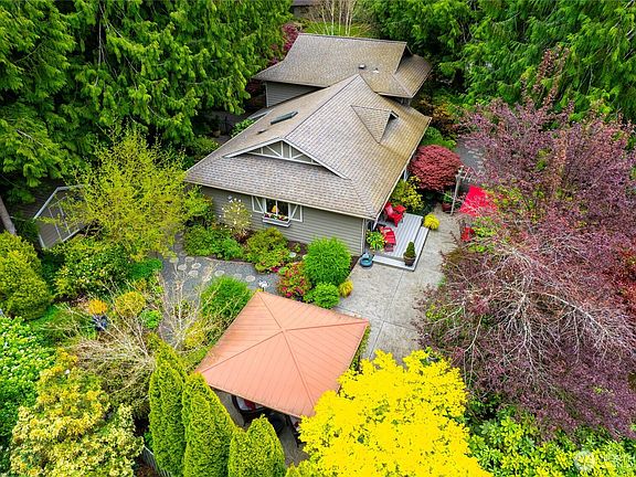 Welcome to Ravenswold of Meadowmeer GCC, a whimsical dwelling, named by its owner to illustrate the charm of this artist’s sanctuary. Every window frames a garden w/meandering pathways thru a NW paradise filled w/native plants, perennials, flowering shrubs & Japanese maples. A peaceful gazebo adds appeal to this songbird sanctuary. Inside, the living rm features a propane FP & bay window. The chef's kit boasts Thomasville cabs & quartz counters. The 648 sq ft garage offers storage & artist studio potential. Known for their prize-winning gardens featured in Sunset Mag, the owners have poured their creativity & expertise into making this garden a stunning masterpiece. A true retreat blending nature, art & home that captures the essence of BI!