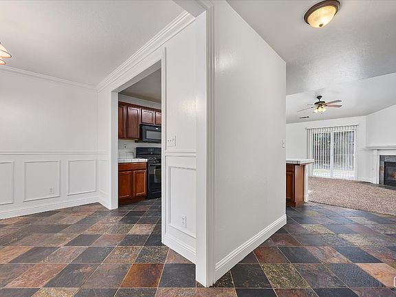 This charming single-story home sits in an established neighborhood with mature trees and landscaping. Inside, you will find a cozy gas fireplace in the living room, and a kitchen that features warm cherry cabinets, tile countertops, and black appliances with a convenient breakfast bar for casual dining. A formal dining room showcases classic wainscoting. Slate tile flows through main living areas, indoor laundry, and neutral paint throughout makes it easy to personalize. Schedule a showing today!