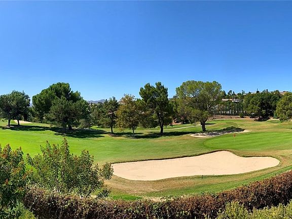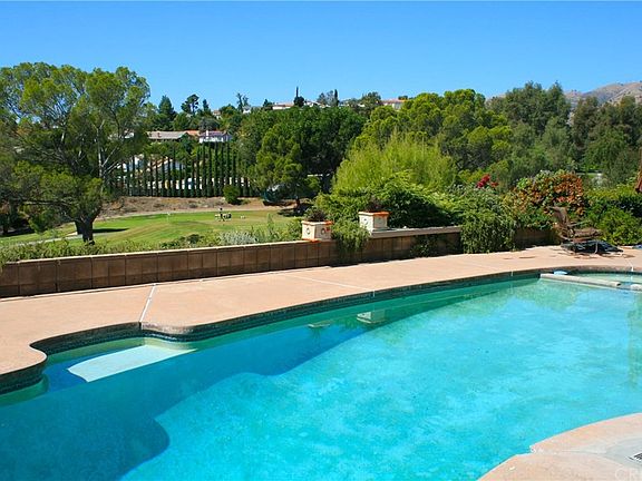 The home your clients have been waiting for! Totally updated single story(no interior stairs) 3BR 2Ba with pool and spa on 12th green of Porter Valley CC, with view of 3 holes and city lights. Kitchen overlooks dining room and huge great room with vaulted ceiling. Interior recently painted, newer HW floors in kitch., dining, great room, entry, and hallway, and newer carpet in bedrooms. Double pane windows and sliding doors and plantation shutters on all, recessed lights in great room, kitchen, and dining room. Granite counter tops in kitchen, travertine counter tops in bathrooms, with custom mirrors and tiled floors and enclosures. Full bath features spa tub. Newer gas 5 burner cook top, newer stainless steel refrigerator and cook top hood, and gas double oven. Copper pipes throughout, newer main line. Crown molding and baseboards. Upgraded electrical service. ADT Pulse security system. Gas fireplace logs and screen, custom mantel. Walls of storage cabinets in garage. Close to shopping including the new upscale Vineyards, as well as churches and schools. Currently Castlebay Lane Elementary and Granada High Charter. Porter Ranch living at it's finest!